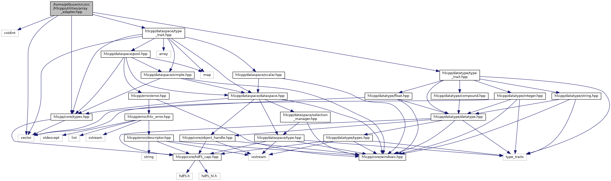 Include dependency graph for array_adapter.hpp: